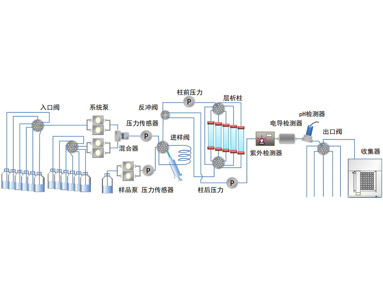 图2PPS-HD蛋白纯化系统标准配置流路图